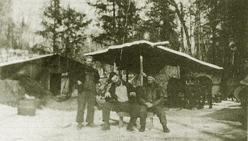 "This card was mailed in 1913 to Mrs. Fred Rades of Pella.  It is the Mielke Brothers' Lumber Camp."