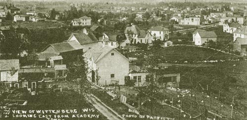 "This view of Wittenberg in the early 1900's is looking east from the Academy Tower."