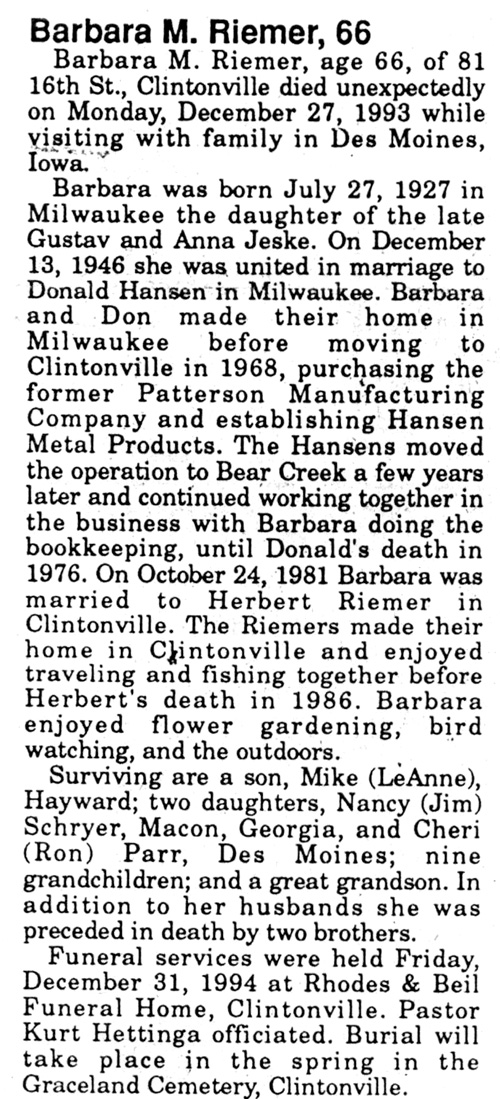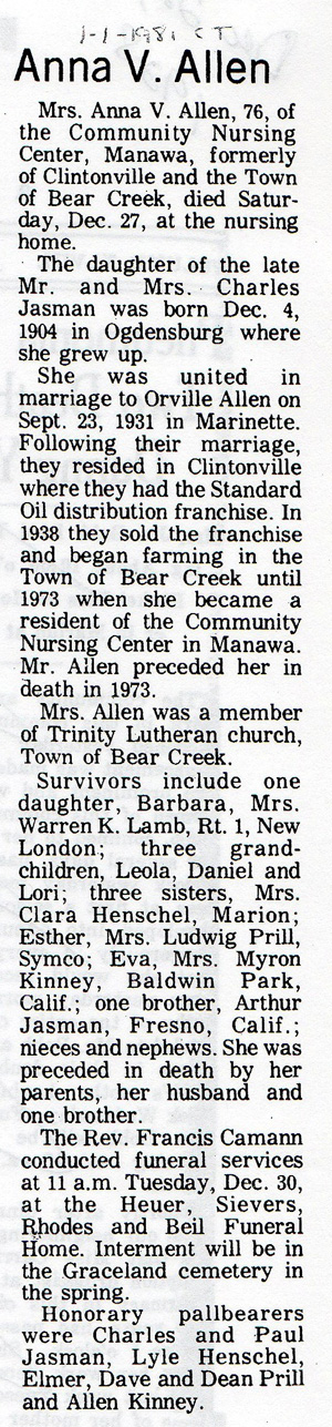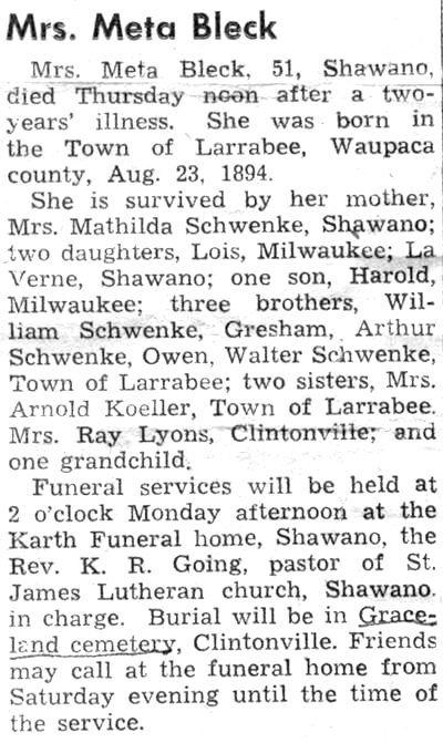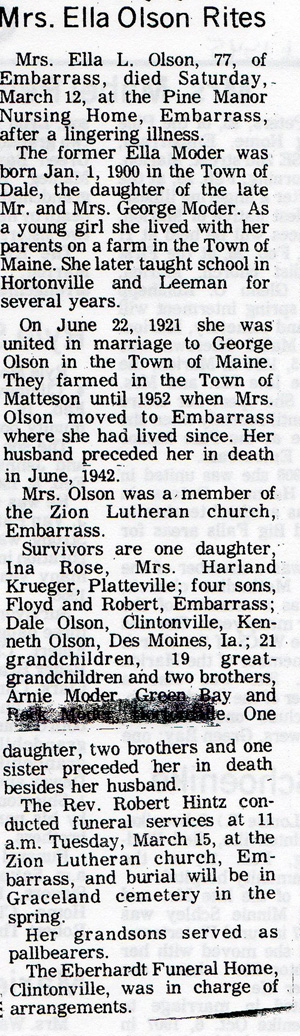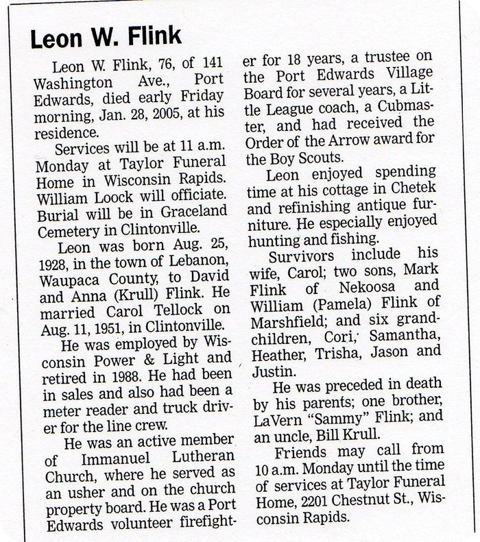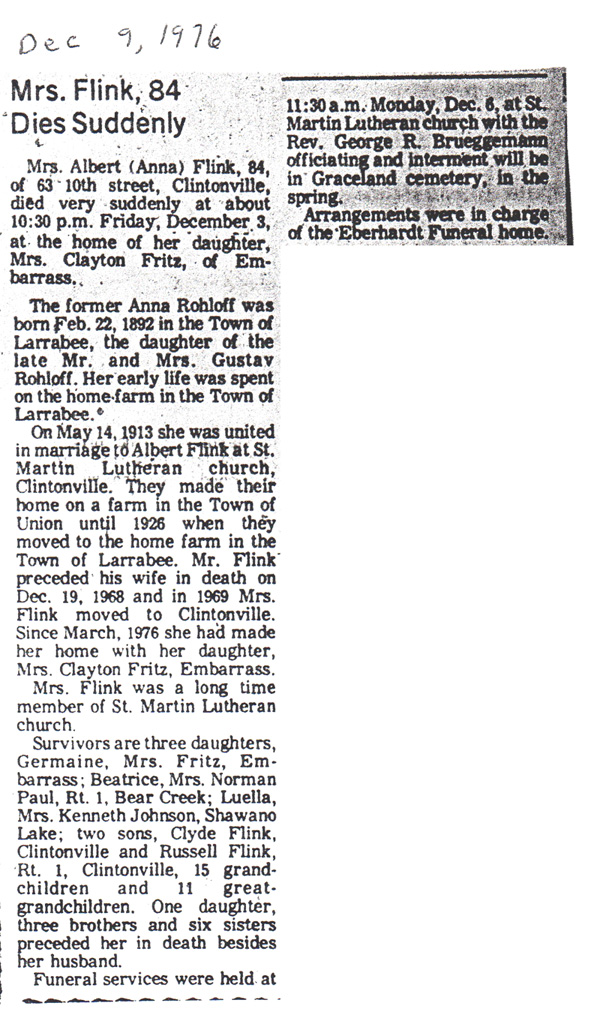 ![]() Newspaper Unknown December 9, 1976 Mrs. Albert (Anna) Flink |