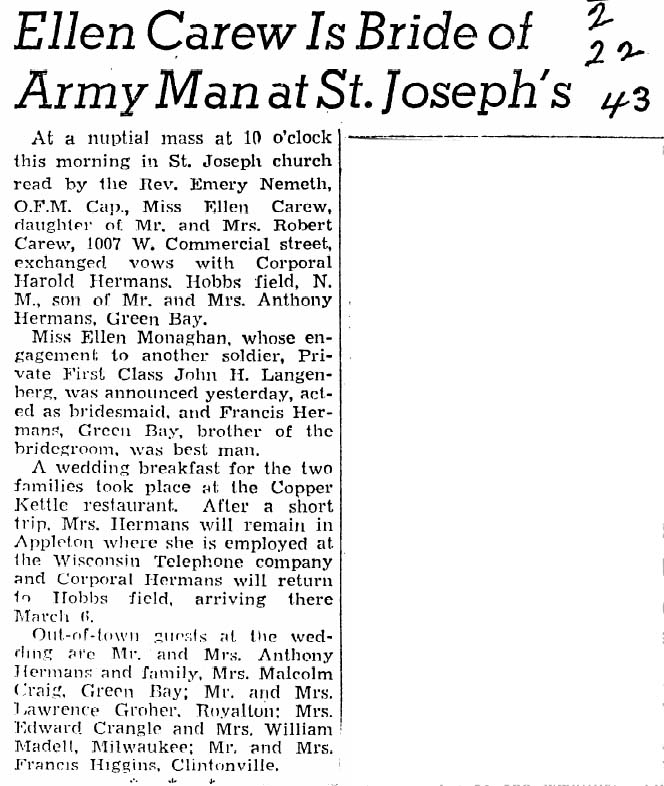 | ◄◄◄ More 1940-1949 Marriage & Engagement Announcements | |||||||||||||||||||||||||